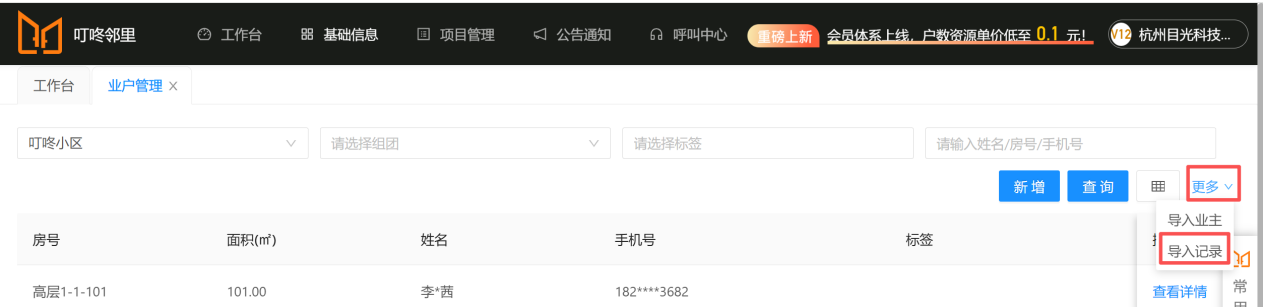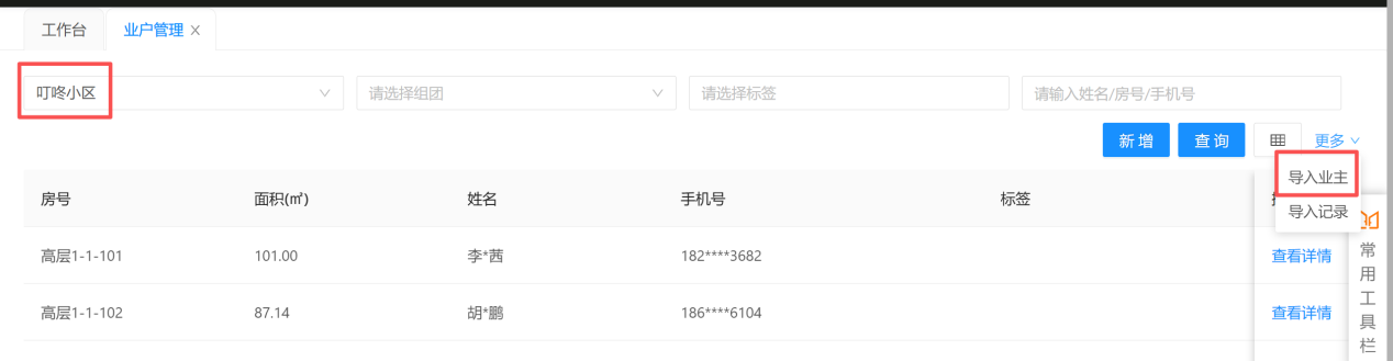2.2如何导入业主信息及查看