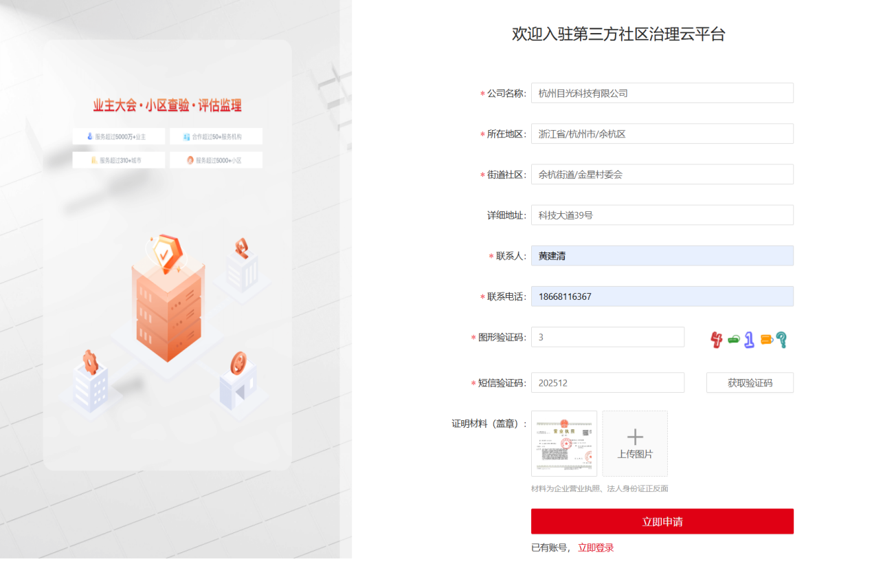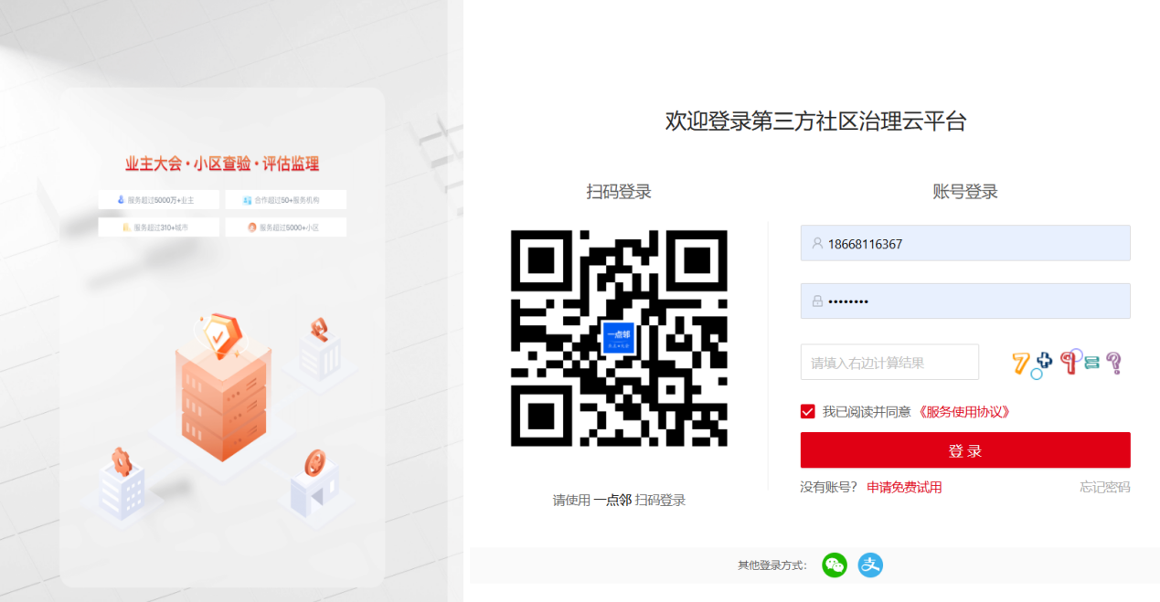 ### 创建组织并登录 系统页面:<a href="https://damoo.ddlinli.com/" target="_blank" rel="noopener noreferrer"> 点击进入平台 </a>  --- 1. 首次进入系统页面,可以先申请创建第三方组织账号,点击页面上的“申请免费试用”进行申请。 2. 进入申请页面中,根据页面提示填入第三方组织名称、地址、联系人及联系电话(主要管理员,后期可以系统里修改设置)、并上传证明材料(营业执照原件扫描或盖章的复印版扫描件),申请后待平台工作人员审核。  3. 审核通过后,会收到平台发送的带账号密码的短信(有可能会被手机拦截到垃圾箱中),到系统页面中进行登录。登录后,下次再登录还可以通过一点邻 APP 进行扫码便捷登录。 `Tips:若要咨询审核进度情况,也可以进入“去投票”小程序首页“入驻试用”下“第三方专业系统”右侧联系在线顾问咨询进度。` ### 常见问题 **Q:** 我们公司需要多个人员一起操作系统,是不是每个人都要申请一下? **A:** 第三方组织只需要一个人申请创建即可,其他管理员、操作人员、话务员,上门人员的账号不在此页面中申请,可由管理员登录系统之后,在右上角账户中心的“员工信息”中添加。